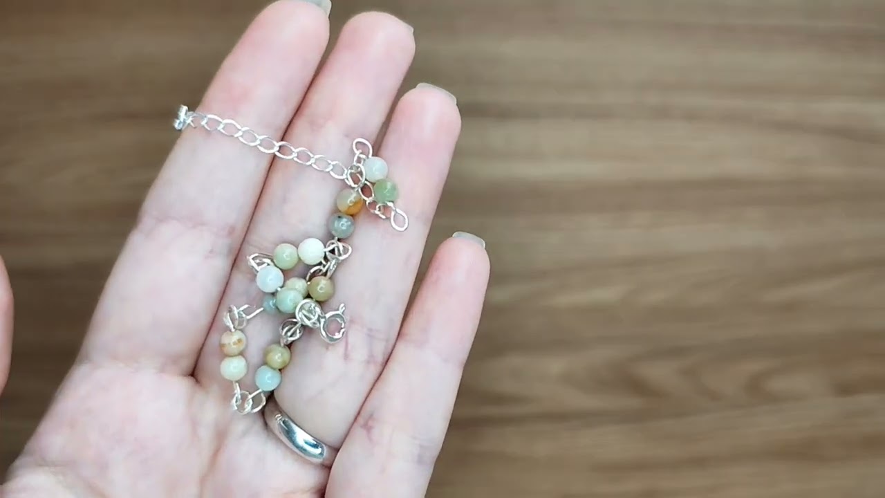 Pulseira de elos feita em prata 925 com pedras naturais de amazonita (esfera, 4 mm), ideal para quem busca uma joia delicada e com um toque natural.