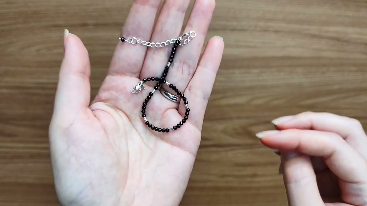 Pulseira feita com pedras naturais de espinélio negro (esfera facetada, 2 mm) e detalhes em prata 925, em linha resistente e maleável, garantindo conforto e acabamento de alta joalheria.